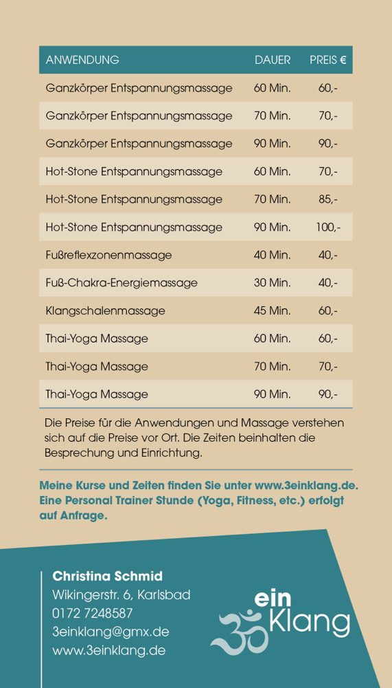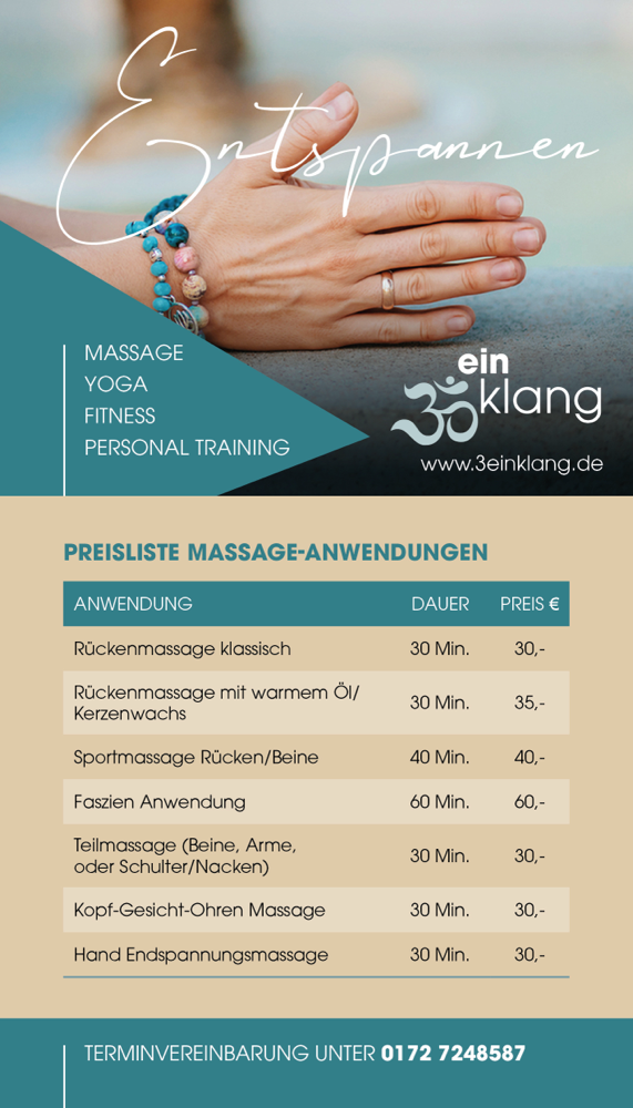 Geschenkgutschein bestellen per WhatsApp 0172/7248587, oder per Mail 3einklang@gmx.de